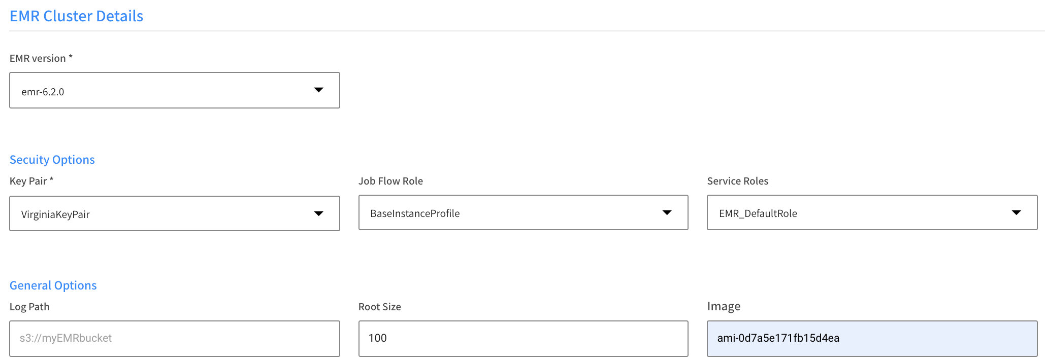 • EMR Version: Choose the version to use from the dropdown list.